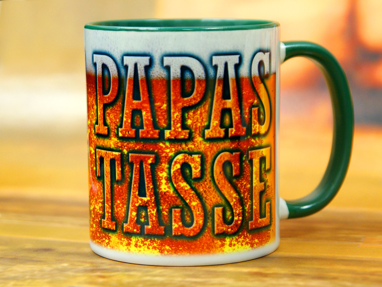Durch ein aufwendiges Druckverfahren erhält diese Tasse ihre brillanten Farben.