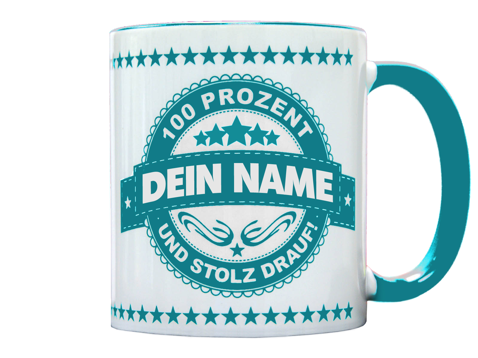• Zweiton-Tassen: Aufdruck in Henkelfarbe