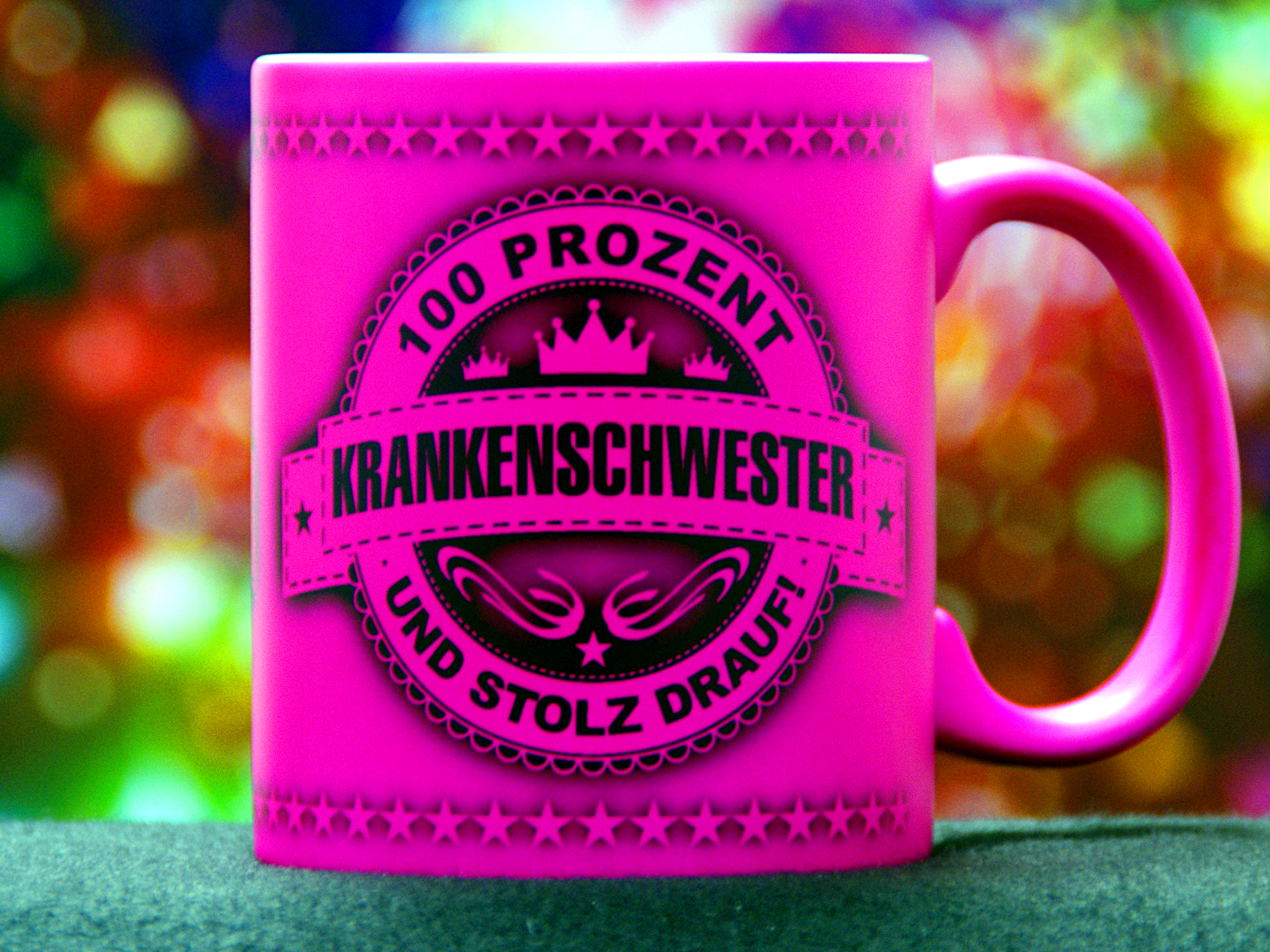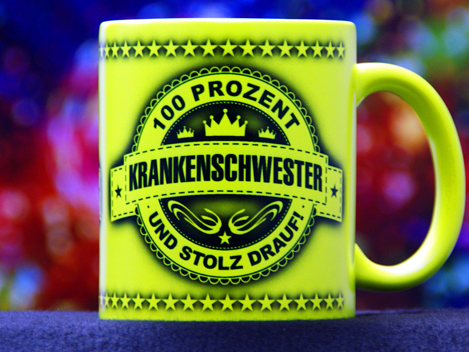 • Neon-Tassen: Aufdruck in schwarz (Handwäsche empfohlen)